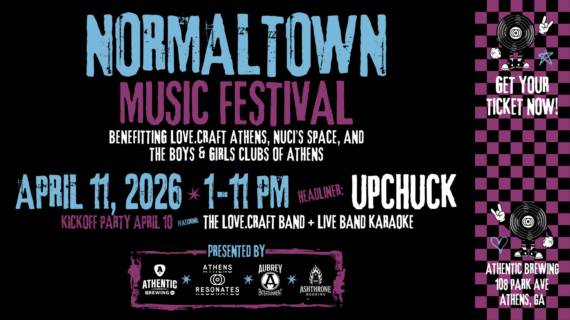 Athentic Brewing Company, Athens Resonates, Aubrey Entertainment, and Ashthrone Booking are thrilled to announce the fourth annual Normaltown Music Festival! The festival will take place at Athentic Brewing Company on Saturday, April 11, 2026, preceded by a kickoff party on Friday, April 10. Community aid has always been the focus of the festival and, for...