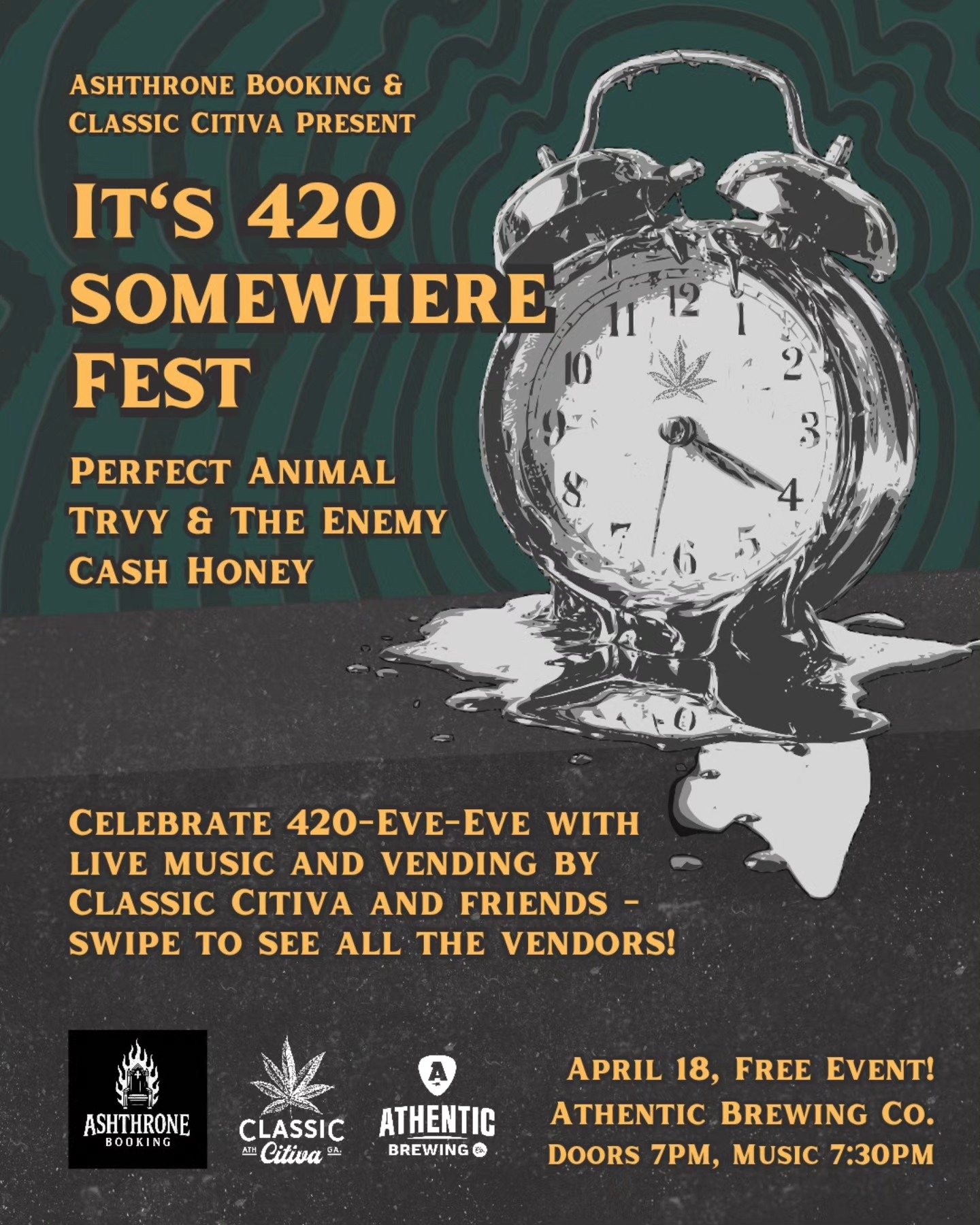 Celebrate 420-eve-eve with live music from Perfect animal, Trvy & The Enemy, and Cash Honey, plus a list of awesome vendors, all hosted by Classic Citiva!